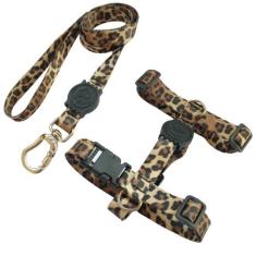 Coleira Peitoral H Anti-Puxão Para Cachorro Com Guia Oncinha - Única M