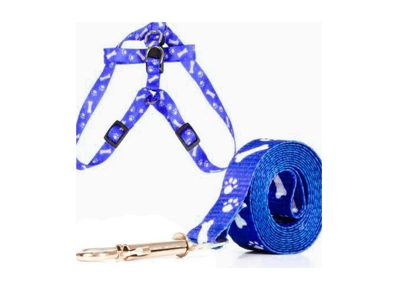 Coleira Pet Cachorro Cães Peitoral Ajustável C/ Guia Azul - Bwx