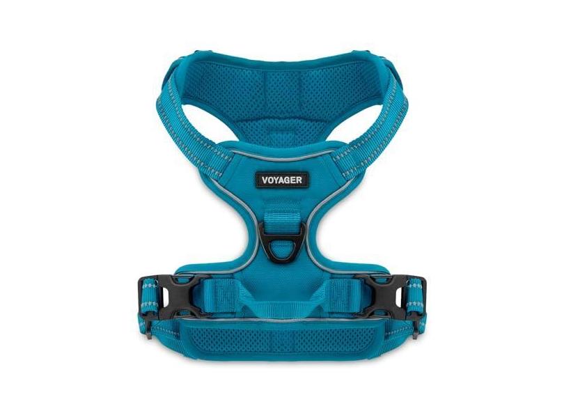 Peitoral para cães Voyager com duas coleiras para fixação sem puxão, ajustável, macio, mas forte, para cães de médio e grande porte com tecnologia reflexiva 3M - turquesa, P (peito: 40 - 50 cm)