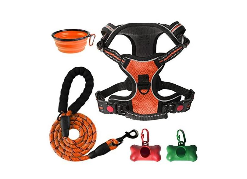 SYEENIFY Arnês para cães sem puxão, colete acolchoado macio ajustável, peitoral para cães médio e grande com coleira para cães de 1,8 m, colete Oxford refletivo para animais de estimação sem asfixia,