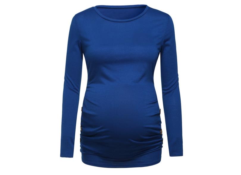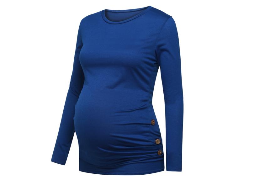 Camisa de maternidade com botão lateral e tops sólidos de maternidade com babados Camisa de maternidade