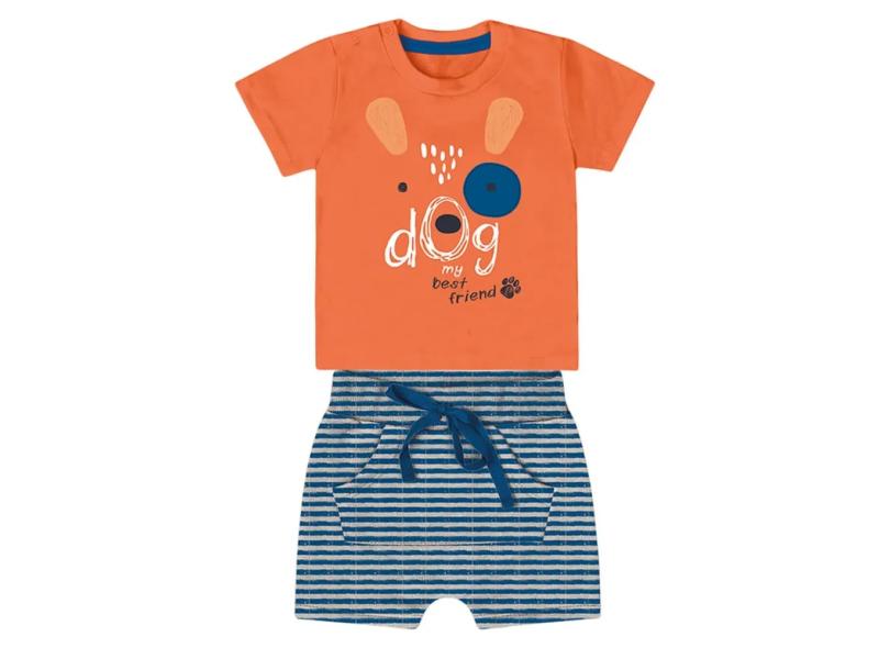 Conjunto Bebê Camiseta e Bermuda Saruel Cachorro Cenoura - Kiko e Kika