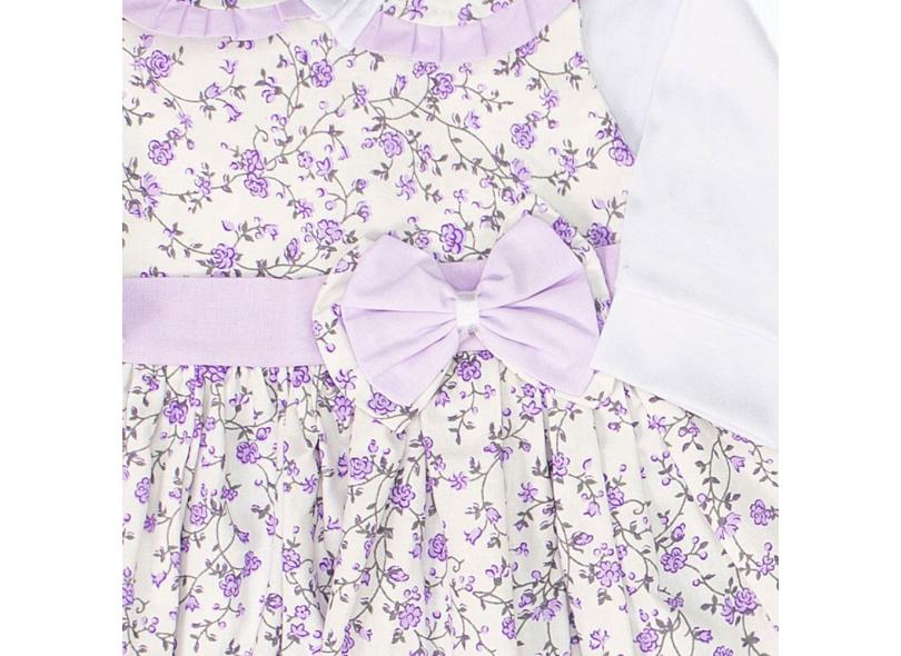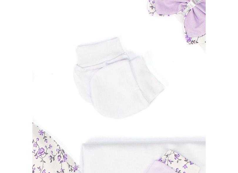 Vestido Saída de Maternidade Menina lilás Estampada Floral 5 Peças 100% Algodão