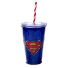 Copo com Canudo Logo Superman DC Comics 450ml - Tasco Inport