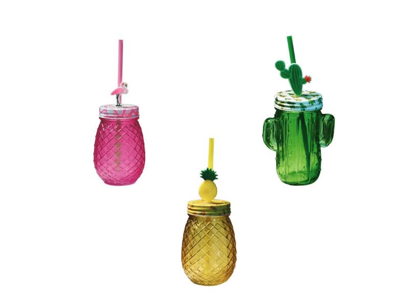 Jogo Copos De Vidro Com Canudo 540 Ml 3 Unidades Lazi