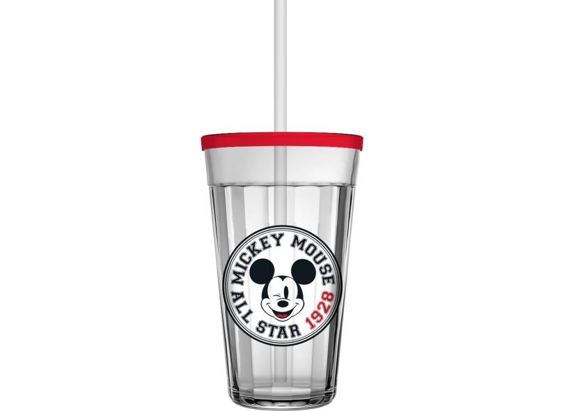Jogo de Copos Mickey Disney, Com Canudo, 450ml, Vidro - 2910