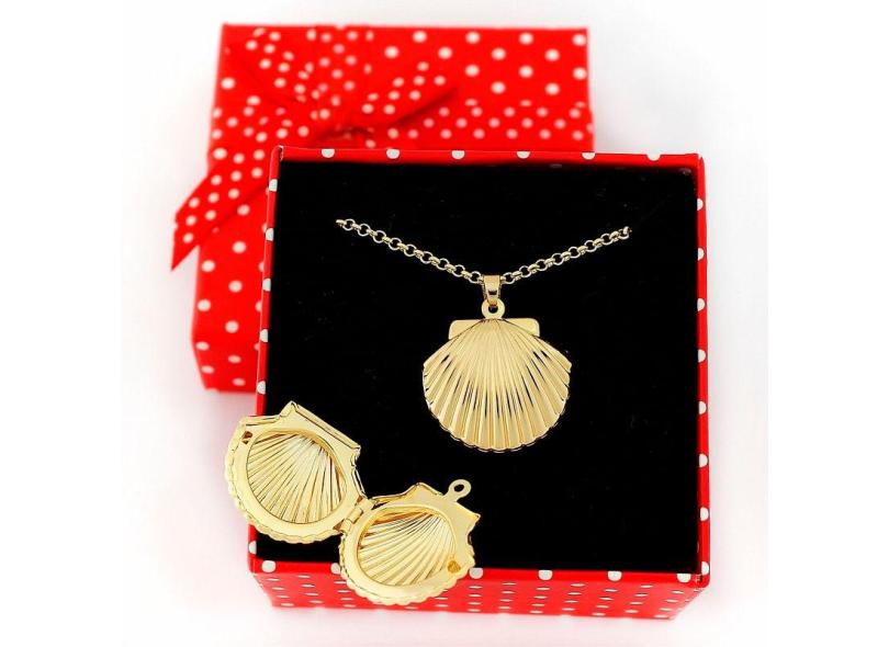 Colar Com Pingente Relicário Concha Folheado A Ouro Pequeno