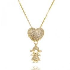 Colar Coração Cravejado Filha Menina Banhado A Ouro
