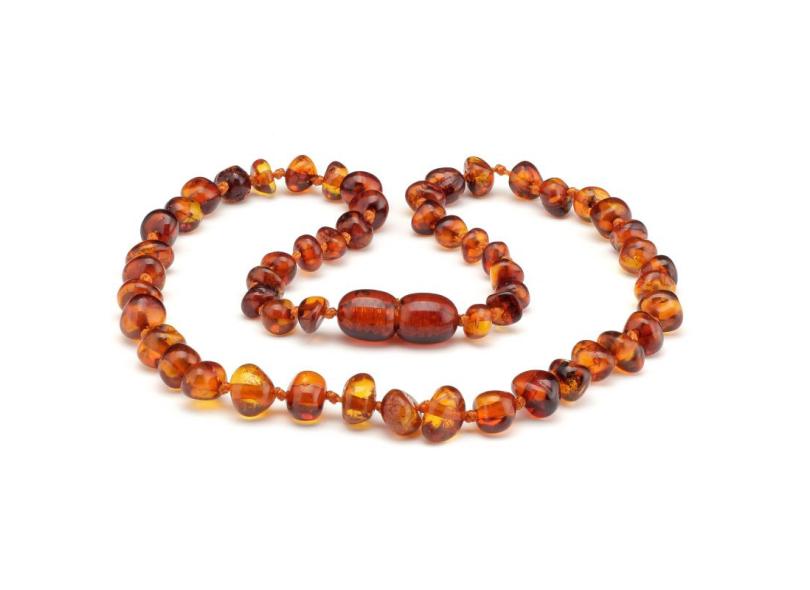 Colar de Âmbar Báltico Original BEBÊ (Modelo Barroco Conhaque Polido/Medida 33 cm)