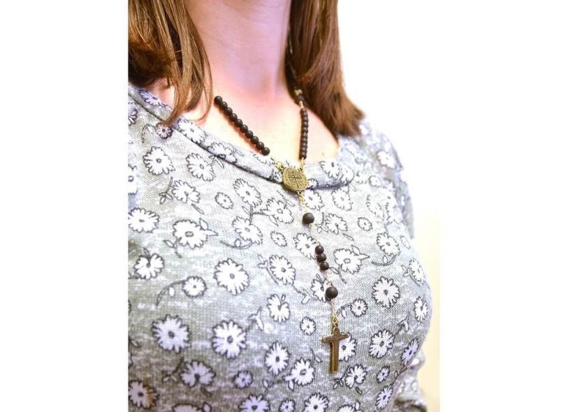 Colar Terço de Pescoço Medalha das Duas Cruzes