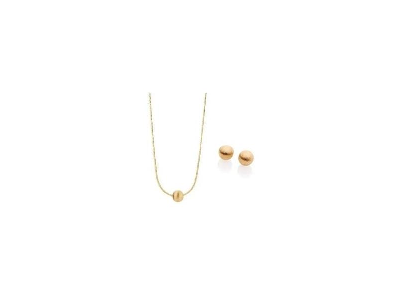Conjunto Rommanel Gargantilha E Brinco Bola Fosca folheado ouro 530408 520480