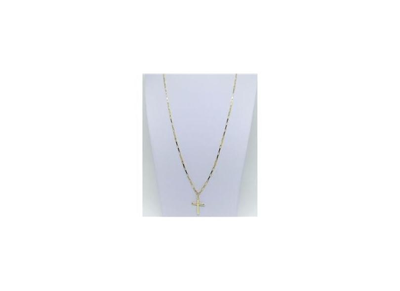 Cordão Corrente Masculina 60cm Pingente Crucifixo 2.7cm Ouro 18k Cadeado