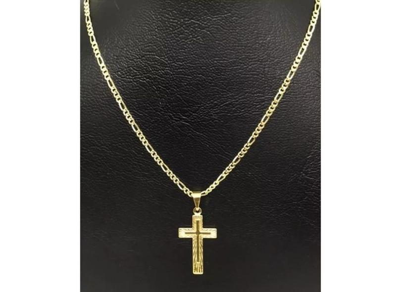 Cordão Corrente Masculino Banhada Ouro 18k 60cm Ping Cruz 2m