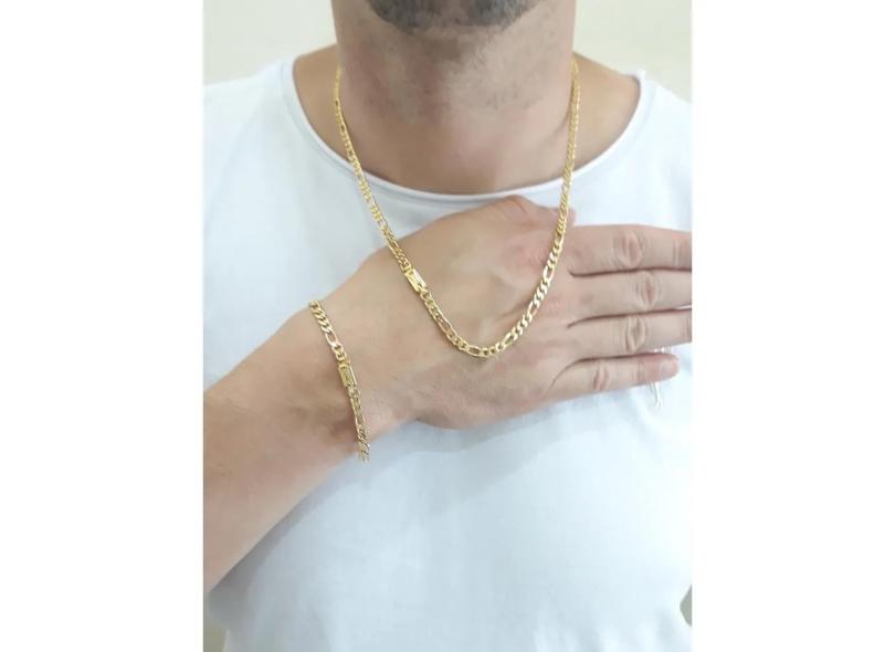 Corrente E Pulseira Masculina 3x1 Banhado Ouro 18k Cordão