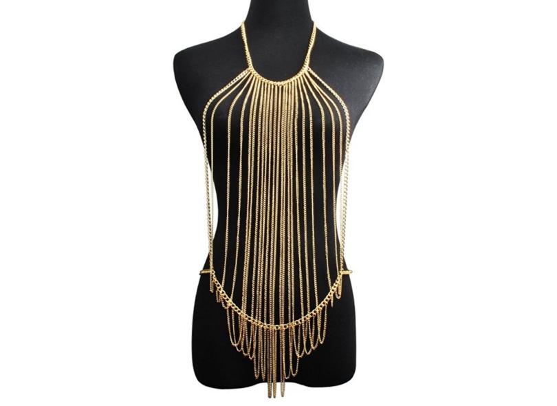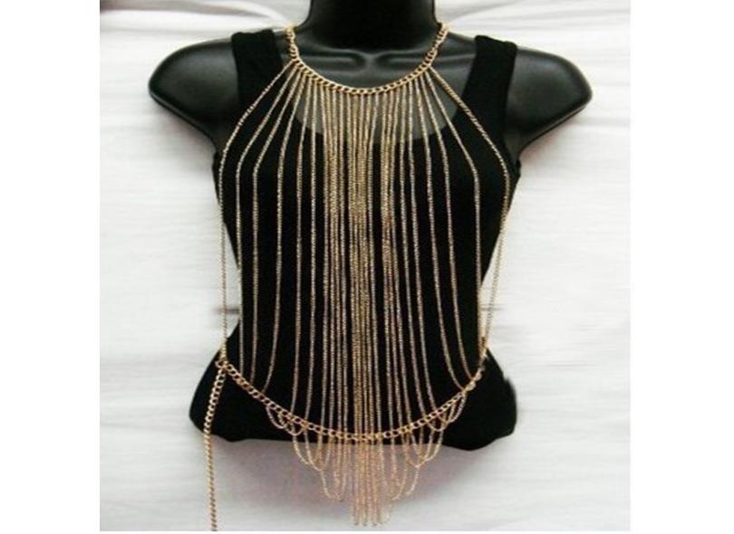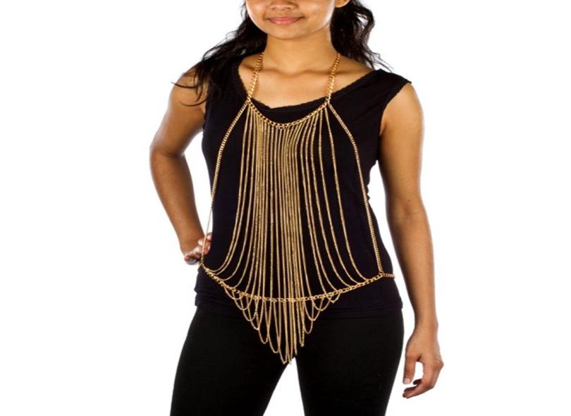 Mulheres Sexy Corpo Cheio De Metal Corrente De Ouro Jóias Colar Bikini Belly Harness