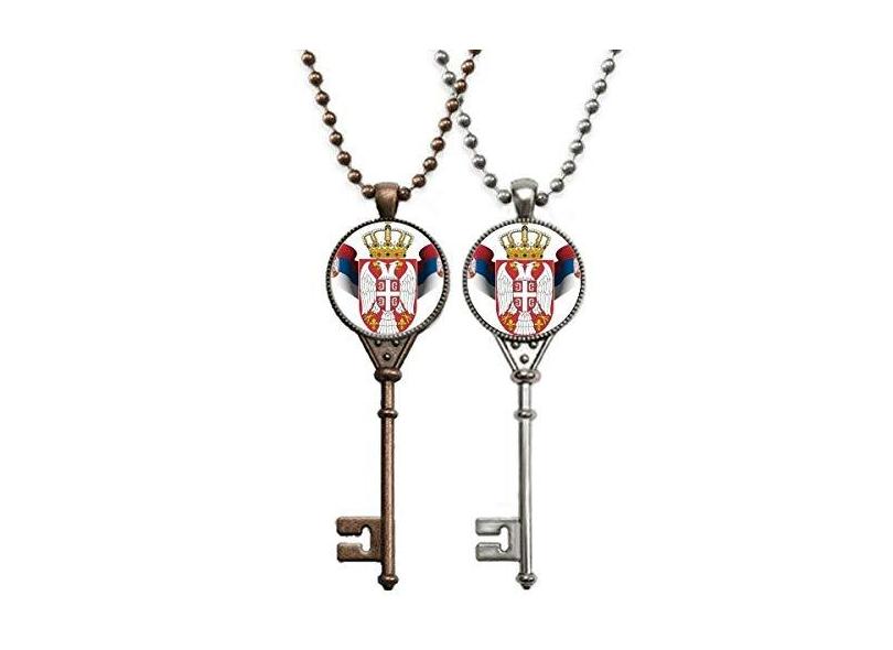 Sérvia National Emblema Country Key Colar Pingente Joias Decoração de Casal