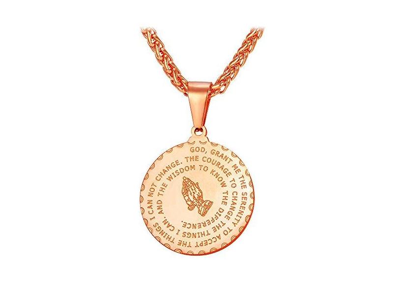 U7 Colar de oração com versículo da Bíblia (em inglês) para homens e mulheres, banhado a ouro 18 quilates, joia cristã em aço inoxidável com mãos rezando, pingente de medalha, com corrente de 51 cm, 55,8 cm ou 61 cm, caixa de presente embalada Medium