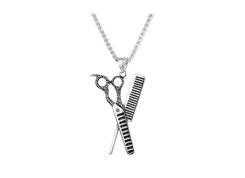 U7 Tesoura Estilo Antigo Colar Cabeleireiro Joias de Aço Inoxidável Tesoura Pente Pingente Pingente Corrente 56 cm
