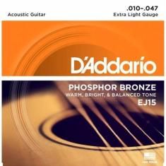 O menor preço encontrado no Brasil para Encordoamento DAddario EJ15 violão 010 aço phosphor bronze atualmente é R$ 109,99.