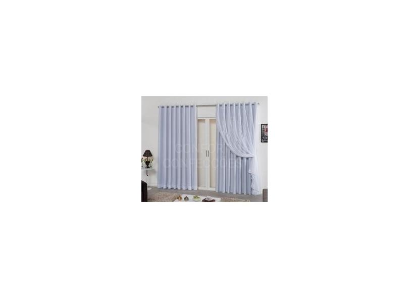 cortina blecaute tecido 3,00x2,80 com voil sala e quarto gelo/