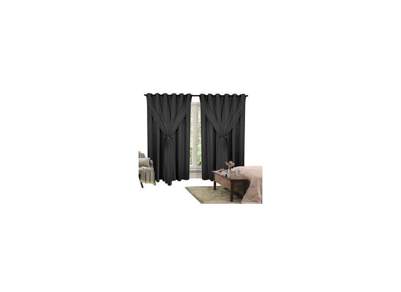 Cortina Corta Luz 2,00m X 2,80m 100% Blackout Com Voil Para Sala Ou Quarto Para Varão Simples.