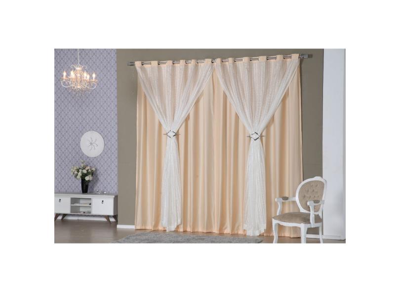 Cortina Realeza para Sala ou Quarto 2,00m x 1,70m Varão Simples Tecido Cetim Liso e Voil - Salmão