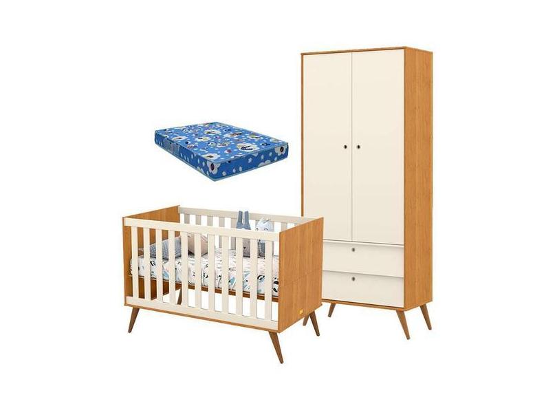 Berço Americano com Trocador Colchão e Guarda Roupa 2 Portas Retro Gol
