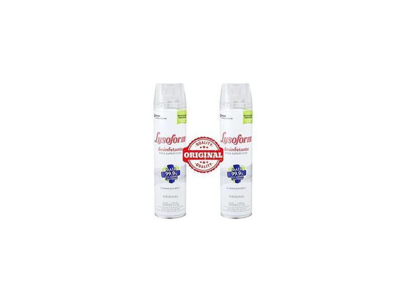 Lysoform Spray 360ml Aerosol Mata 99.9% Bactérias Kit 2 Unid