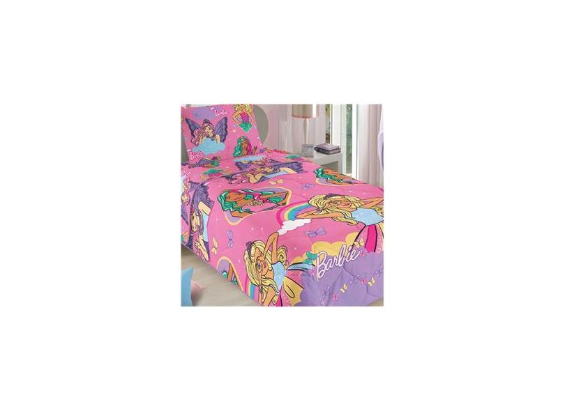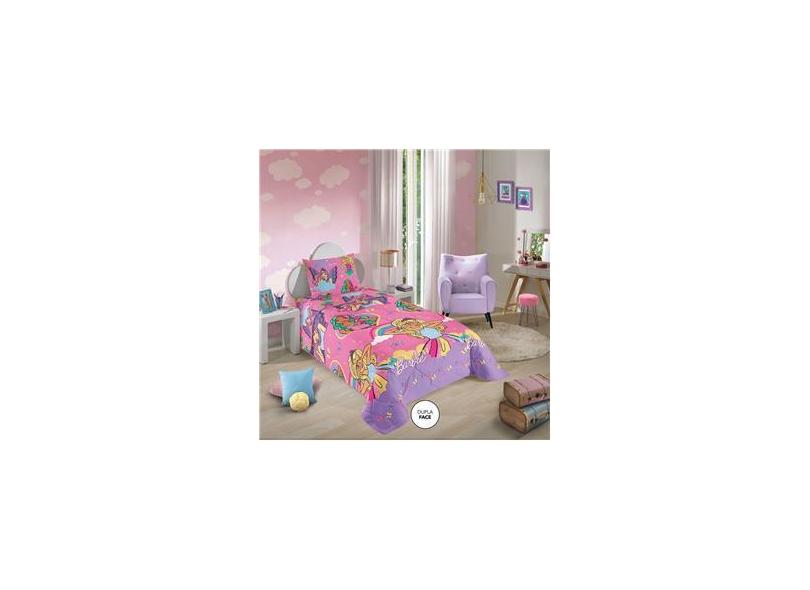 Edredom Solteiro Lepper Dupla Face Barbie Reinos Mágicos Microfibra 150x220 cm -