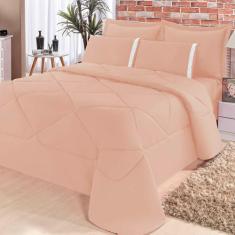 Kit Edredom + Lençol Aconchego Dupla Face Casal Queen 6 Peças - Salmão