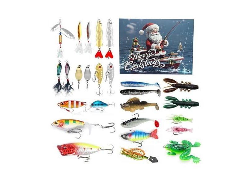 Calendários do Advento de Pesca 2024, 24 Dias Isca de Pesca Calendários do Advento de Natal, Calendário de Contagem Regressiva de Natal com Kit de Iscas de Pesca, Marido Avô, Amante da Pesca