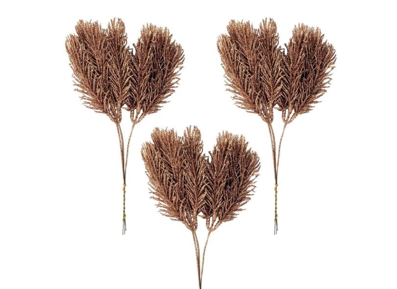 Kit 3 Folhagem De Natal Rose Dourado Enfeite De Natal J