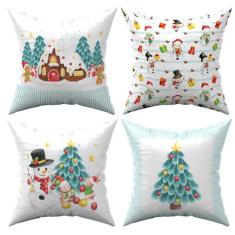 Kit 4 Capas de Almofadas Natalinas 45x45cm Enfeites de Natal, Decoraçã