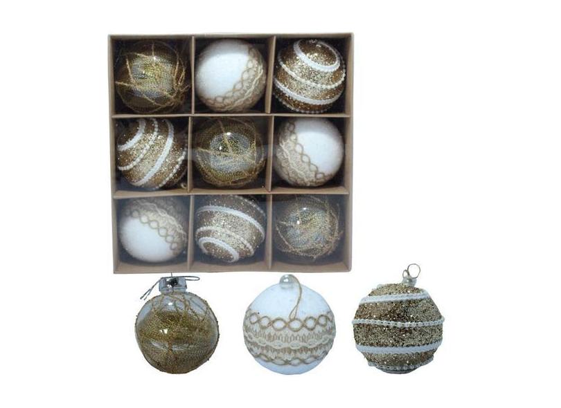 Kit Decoração Enfeite De Natal 8Cm 9 Unidade Dourado - Elite