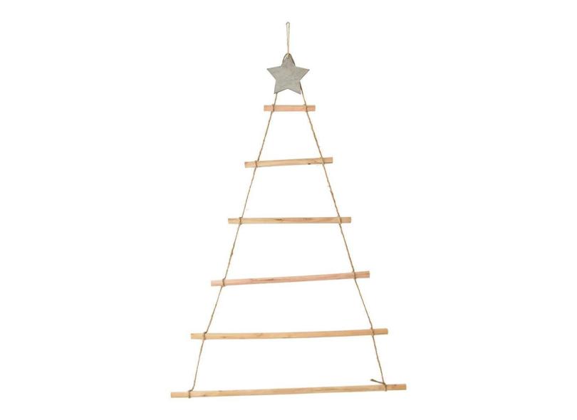 Nurnesy Árvore de escada de madeira com estrela para pendurar na parede galho decoração de Natal ornamentos de parede de madeira escada de ramo de madeira, enfeites de pendurar para árvore de Natal