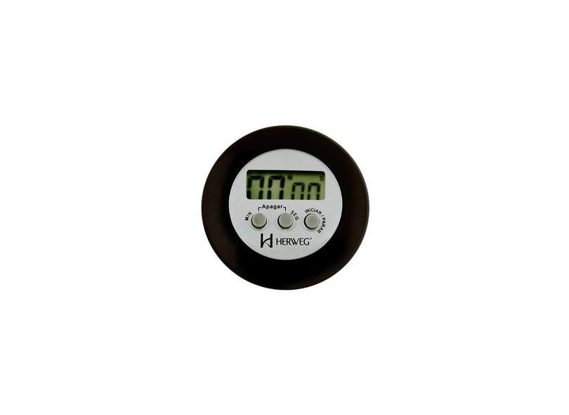 Timer Herweg Digital Preto Redondo 3308 034 Alarme e Imã Traseiro