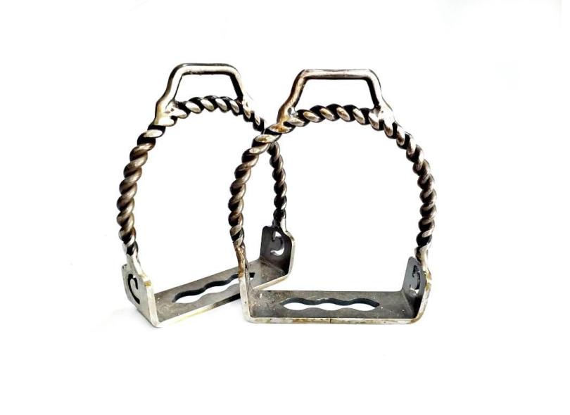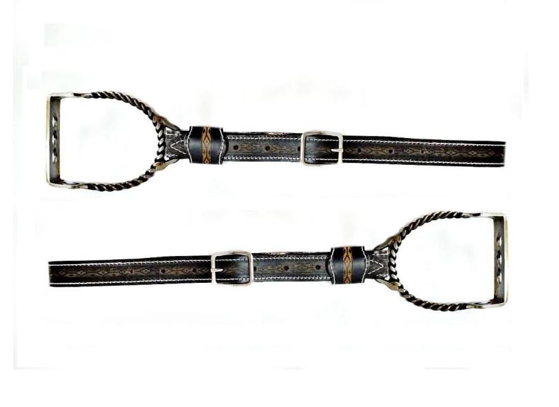 Par Loros Couro Com Estribo Torcido Aço Carbono