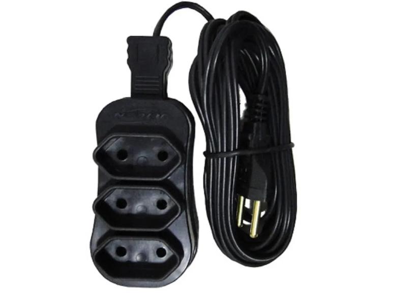 Extensão Elétrica 3 Tomadas Adaptador Universal 3M Paralelo Bipolar Simultâneo Filtro de Linha