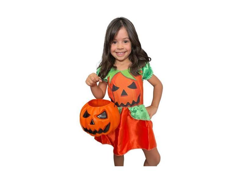 Fantasia infantil halloween abobora vestido com balde de abóbora - Xux