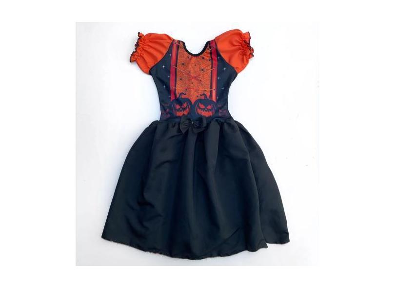 Fantasia Infantil Vestido Bruxa Bruxinha Manga Laranja Menina Hallowee