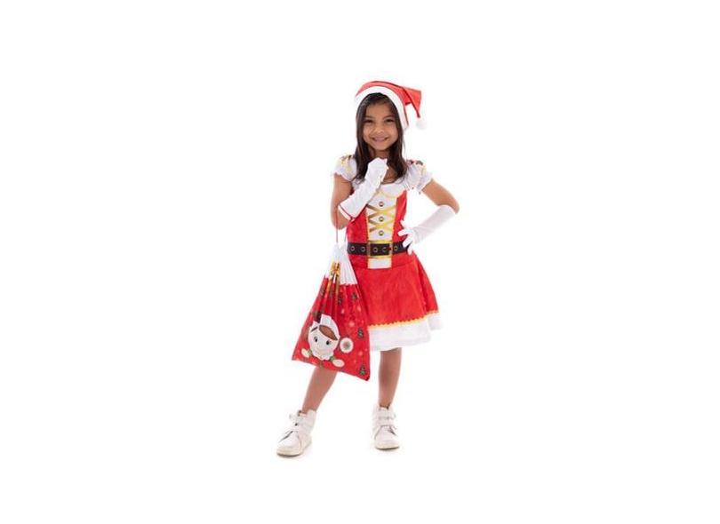 Fantasia Mamãe Noel Infantil C/ Gorro Saco De Presente, Luva - Fantasi