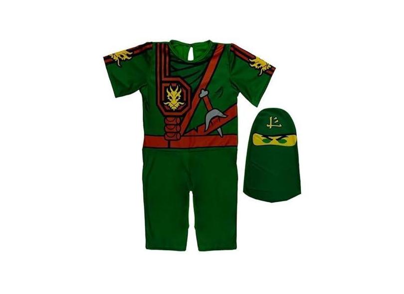 Fantasia Ninjago Verde Infantil Lego Lloyd Curta com Gorro