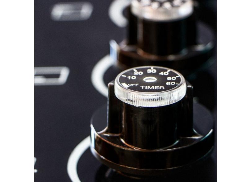 | Funções e Recursos da Mesa | Aquecimento RápidoBotões RemovíveisQueimadores DiferentesQueimador com Tripla ChamaSensor Corta GásTimer Automático |