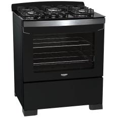 Com a mesa confeccionada em Vidro Temperado, o aparelho possui Botões Removíveis, Queimador com Tripla Chama, Trava de Segurança, fora a grade Individual. Com 94.7cm de altura, 76.0cm de largura e 65.7cm de profundidade, este fogão pesa 39.3kg.