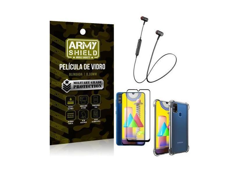 Fone Bluetooth HS-615 Samsung M31 + Capinha Anti Impacto + Película 3D