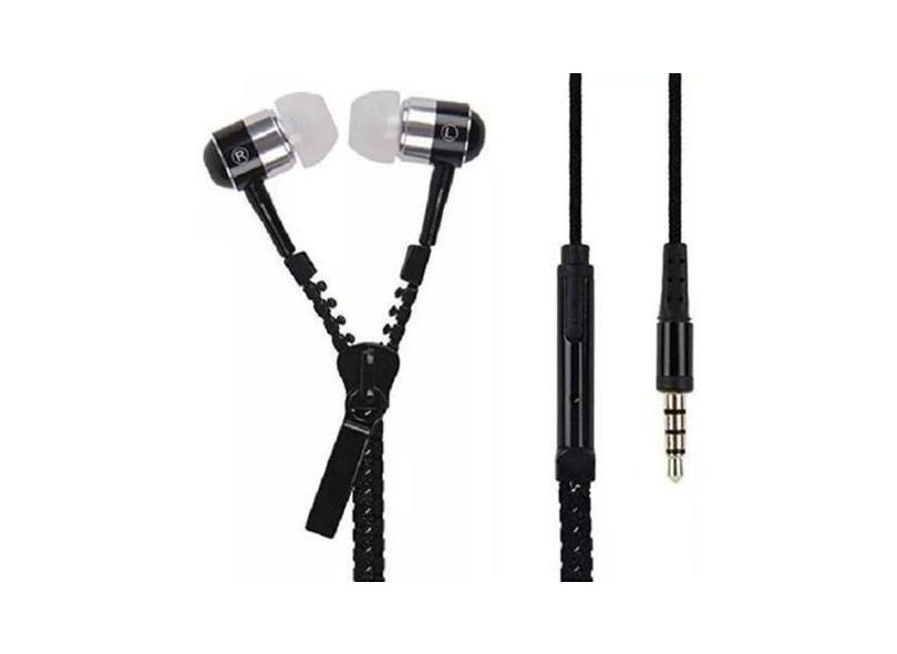 Fone de Ouvido Com Microfone Embutido Zíper Preto FON-8741 Inova