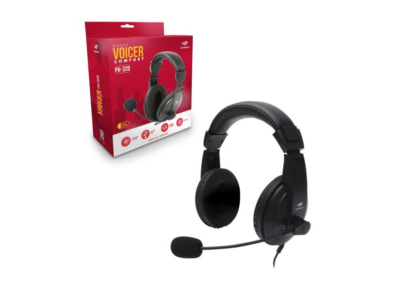 Headset C3Tech Voicer Comfort PH-320BK, USB 2.0, Alto-Falante 40mm, Controlador de Volume, Preto