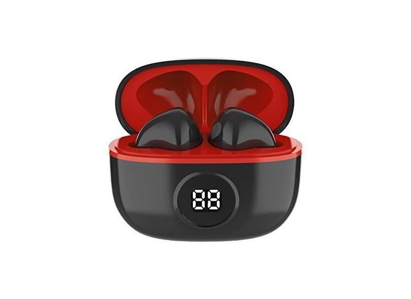 WB Fone de ouvido Bluetooth In-ear Mini IO, Sem fio, Display Digital, Bateria 20h, IPX4, Super Bass, Compacto, Touch sensível ao toque, Conexão automática, Vermelho
