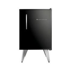O frigobar Brastemp 76 Litros BRA08 possui um estilo retrô com design vintage, pés-palito e puxadores originais dos anos 50. Além disso, ele conta com degelo manual, resfriamento rápido, prateleira, porta-latas e separador de garrafas, proporcionando praticidade e organização.