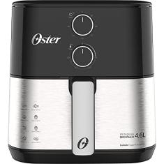A air fryer Oster Compact é uma opção de 4,6L de capacidade, 1500W de potência e acabamento em inox.